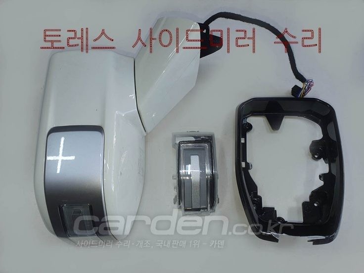 토레스 사이드미러 신품 중고 재생상품 분해 필요한 부품 떼어내서 파손 고장 부위만 콕 찝어서 1대1로 부분 교체 수리 작업.