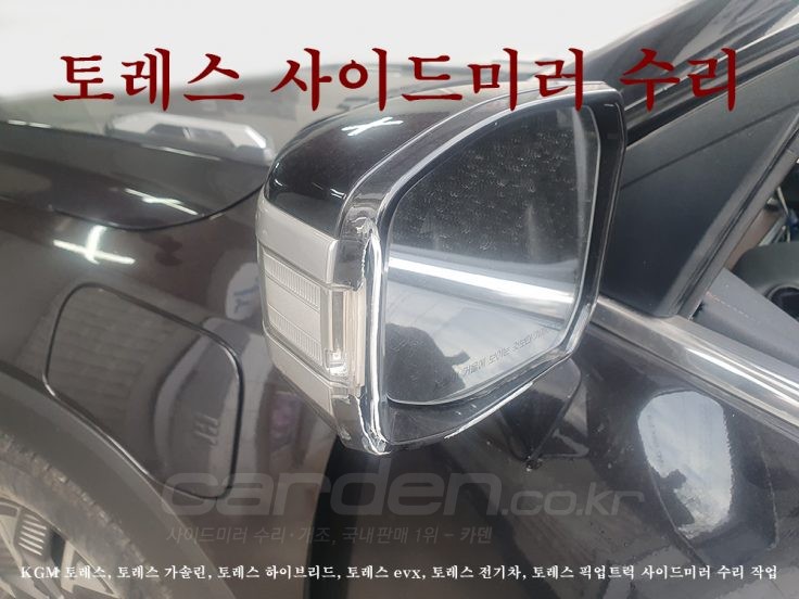 토레스 (운전석 LH) LED램프 오토폴딩 사이드미러 백밀러 커버 베젤/테두리/하우징/케이스 깨진부분 파손 수리 작업.
